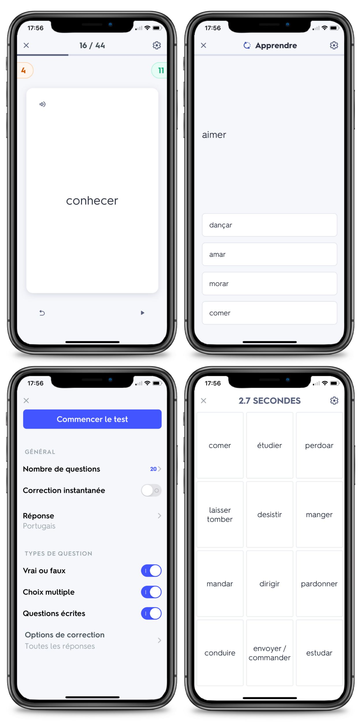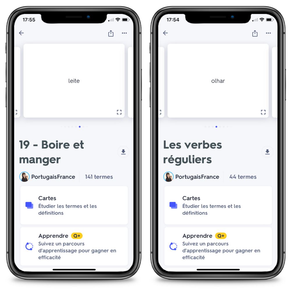 Grâce à Quizlet, vous aurez un accès exclusif à 4 fonctionnalités d’apprentissage très efficaces pour apprendre le portugais 2 fois plus rapidement :